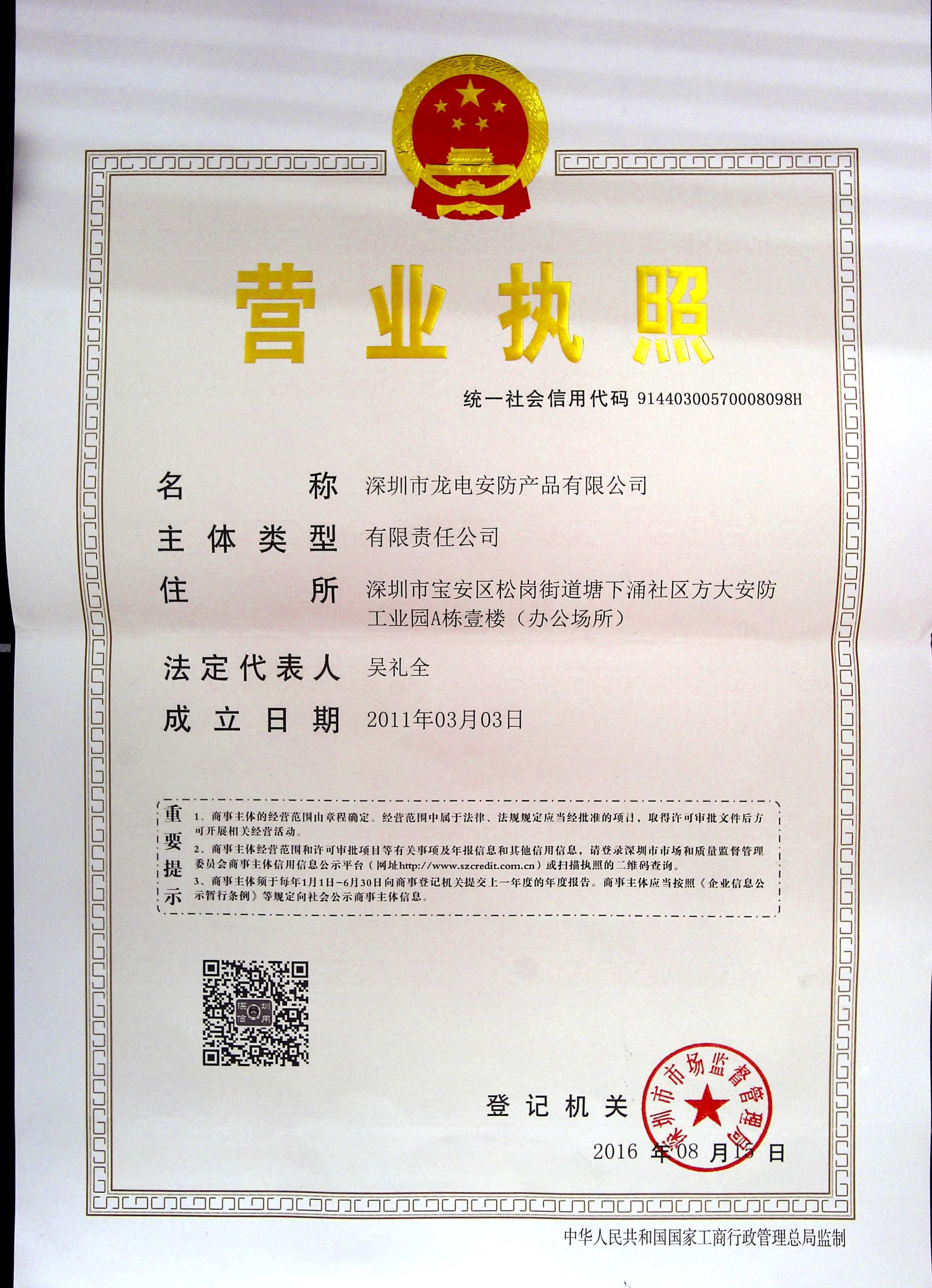 深圳市龍電安防產品有限公司是在深圳市工商局注冊,專業從事消防、安防產品研發、生產制作、銷售及安裝的綜合性科技型企業。